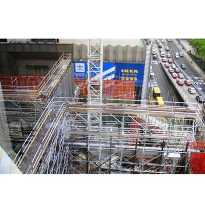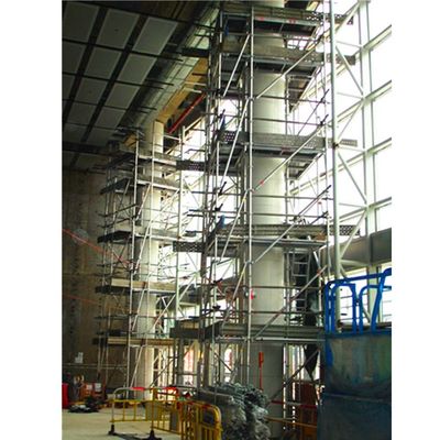 El sistema de andamios de aluminio tubulares Leader GN50 elimina los procedimientos de diseño que consumen mucho tiempo.se garantiza un montaje y desmontaje rápidos ya que los patrones de orificios de inserción del conector están en ángulo recto y alineados con precisiónLas conexiones entre los aparatos horizontales, diagonales y nivelados y las normas verticales están diseñadas para una rápida erección.